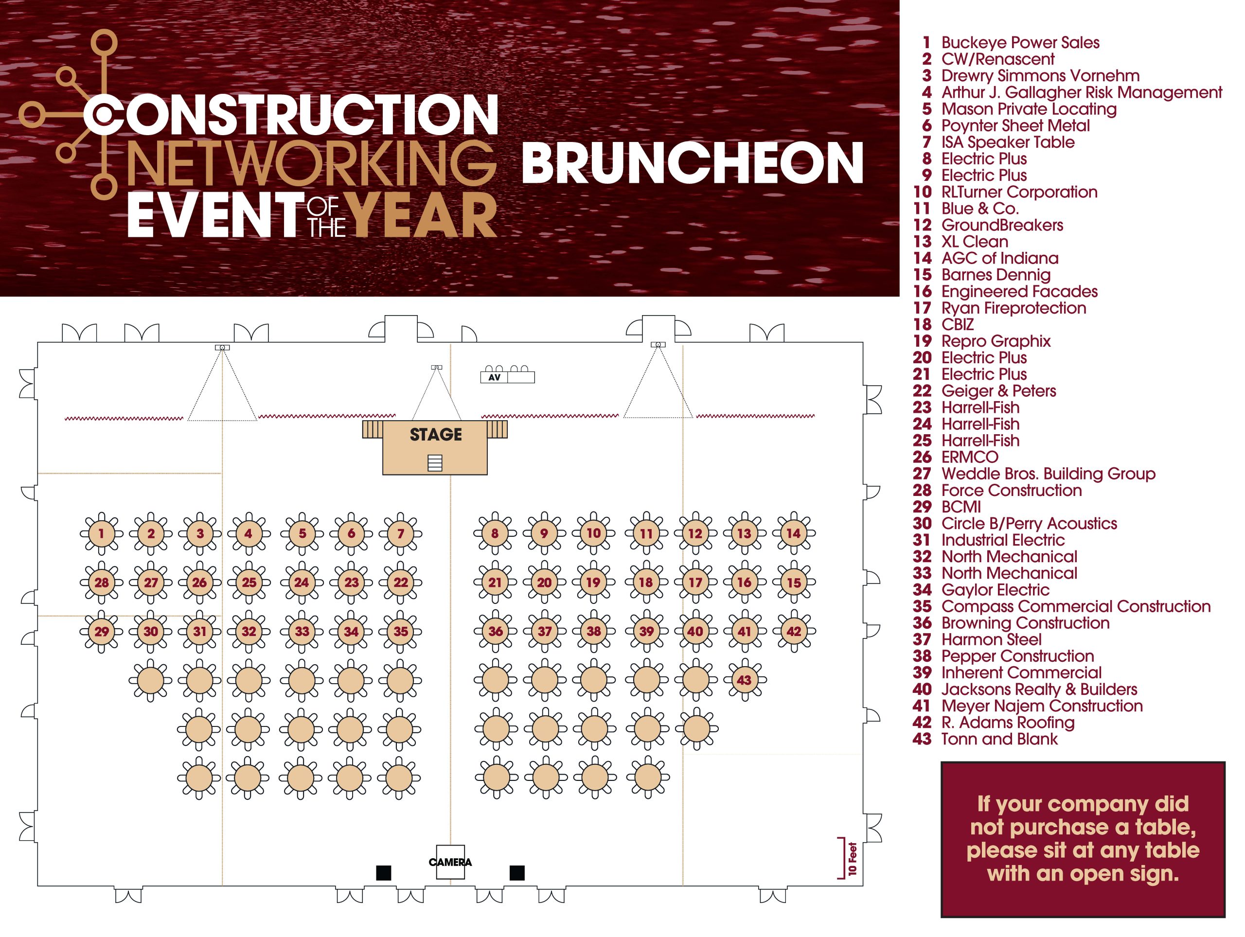 Please find the list of brunch attendees below. If you do not have a Table # listed with your name, you may sit at any table with an Open Seating sign. Those are the tables without numbers in the diagram above.